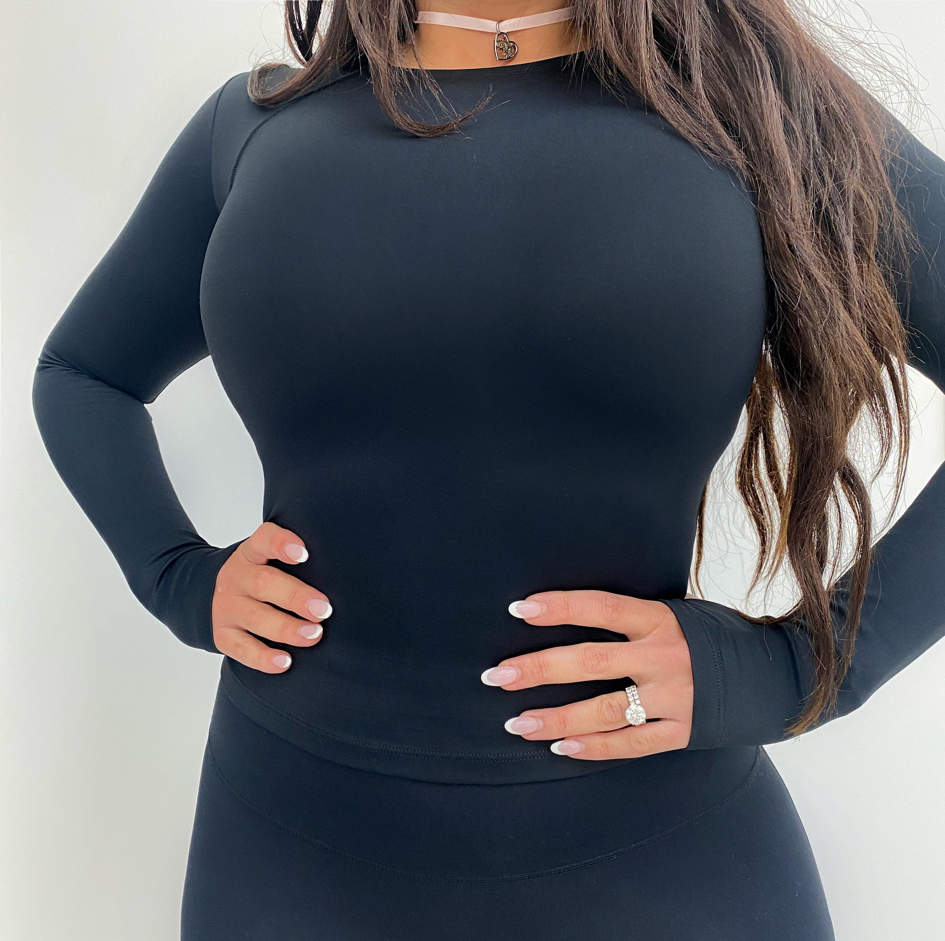 Soft and stretchy, perfect for a workout or a casual outing. You can't go wrong with a long sleeve black top, match it with our Black Long High Waisted Leggings for a perfect sleek look.