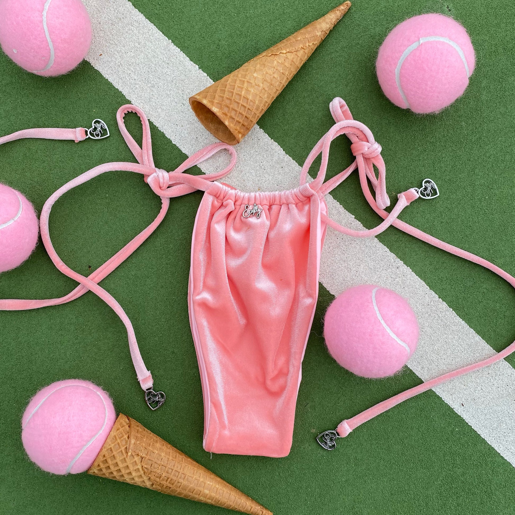 Our bikini features premium velvet fabric and double lined to avoid any see-through surprises. Adjustable bottoms to customise your own bikini to the perfect size for your body. The fit and detail of this bikini is exquisite, it's the perfect summer must-have to add that luxury feel to your hot girl summer.